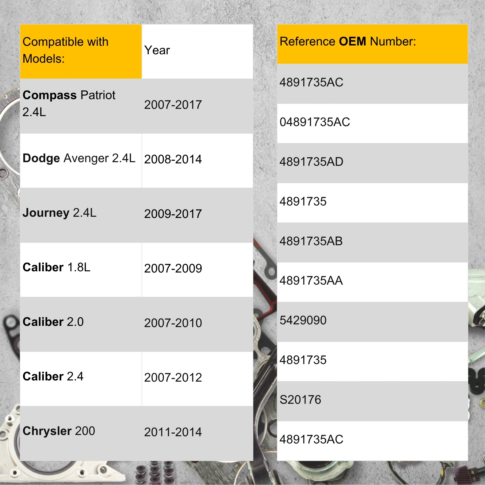 Compass Patriot 2.4L | 2007-2017 |