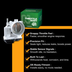Each Nakamoto Fuel Injection Throttle Body is made of premium quality metallurgy and is machined by advanced CNC cutting technology of OE Standard precision to improve throttle response and engine performance.