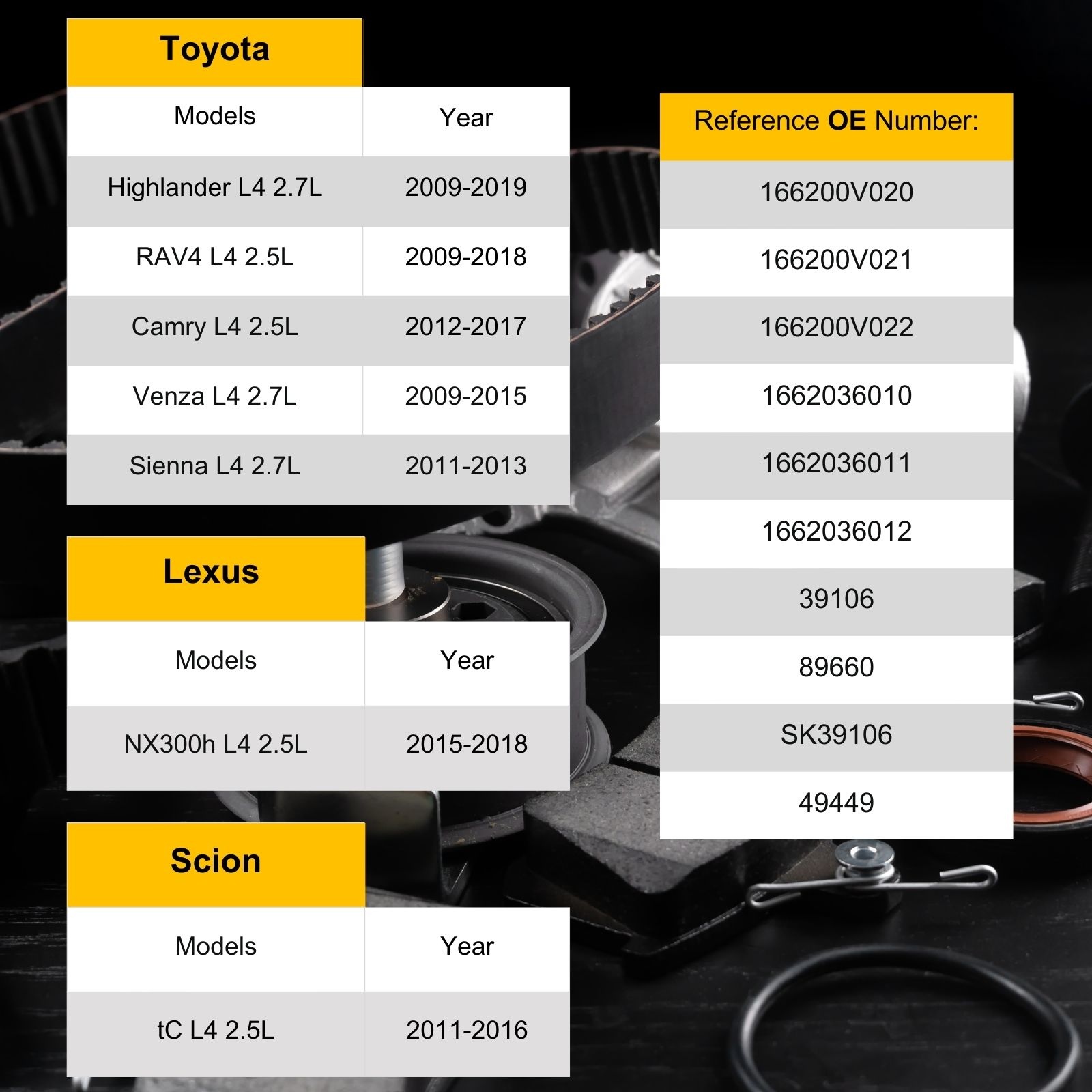 | RAV4 L4 2.5L | 2009-2018 |