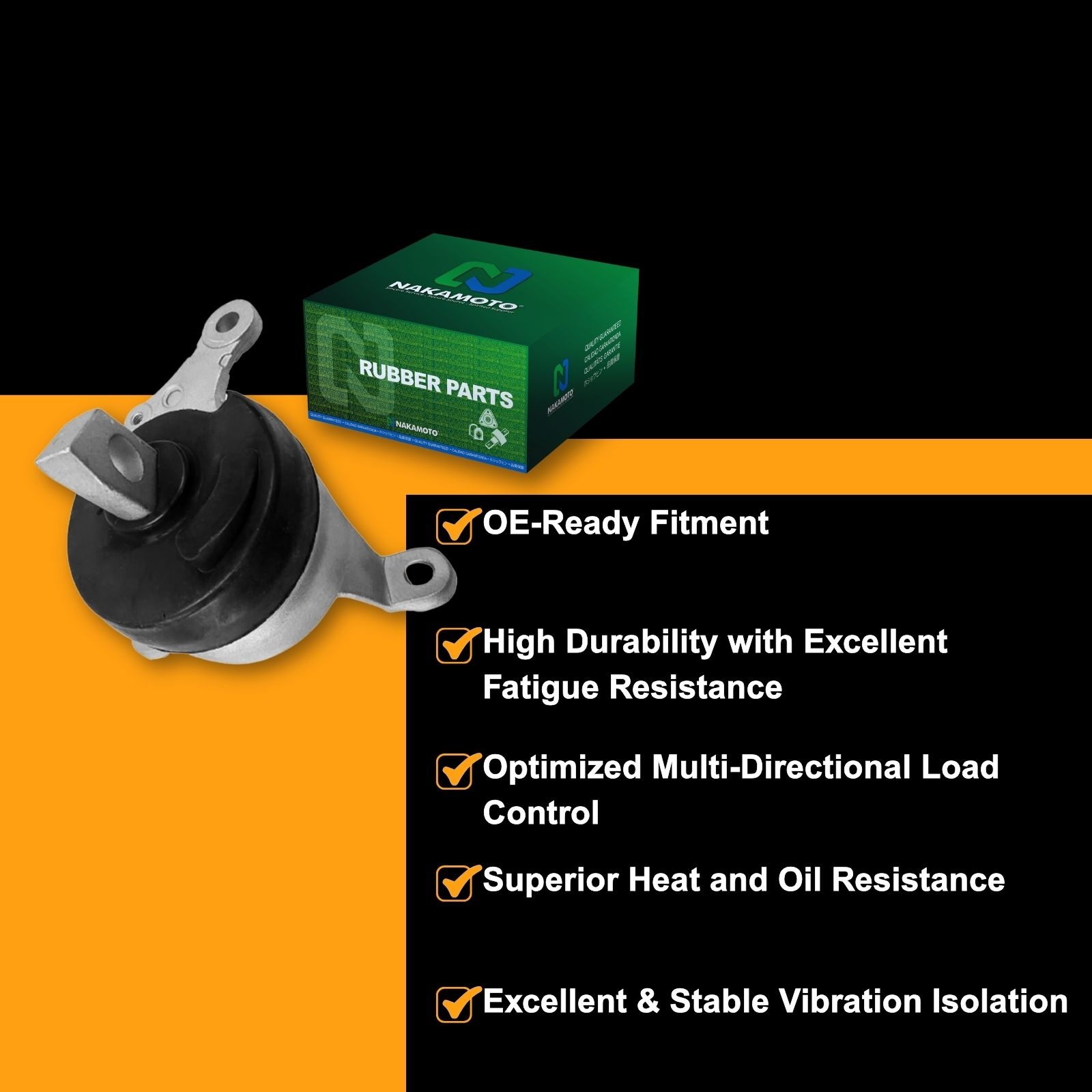 Nakamoto Suspension & Stabilizer Arm Rubber Bushing is made out of premium quality rubber blend and steel metallurgy, manufactured by advanced tooling technology for improved durability and longevity.