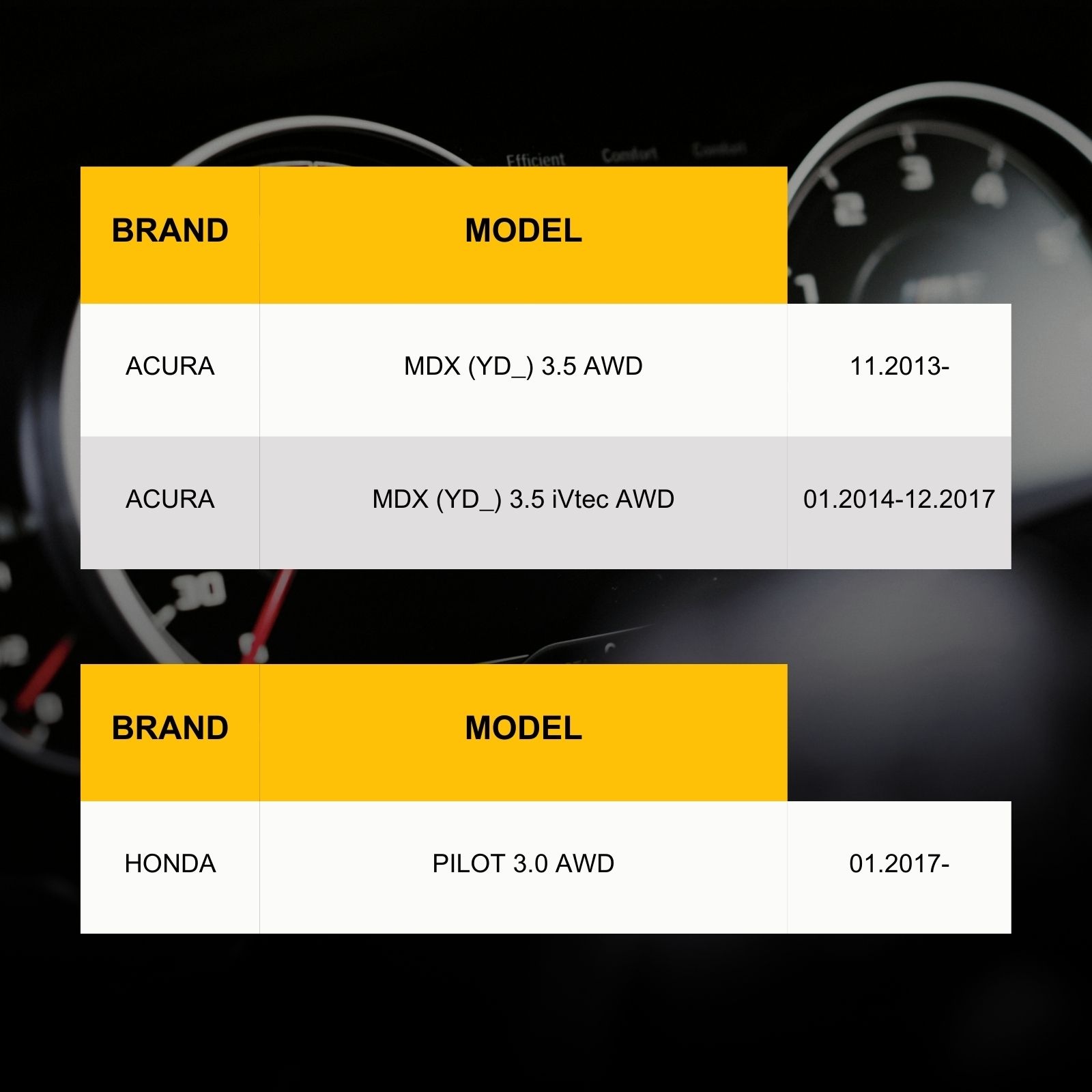 | Honda | PILOT 3.0 AWD | 01.2017- |