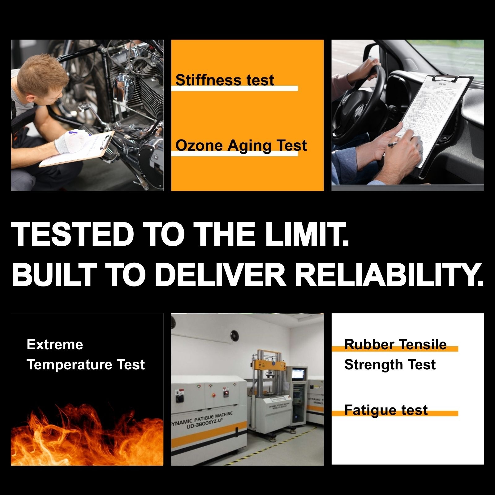 Each Nakamoto Rubber Part is tested by independent laboratories to cross check the rubber properties including temperature,resistance, anti-aging, compression change, anti-ozone, anti-corrosion to ensure it sustains in all terrain and weather conditions.