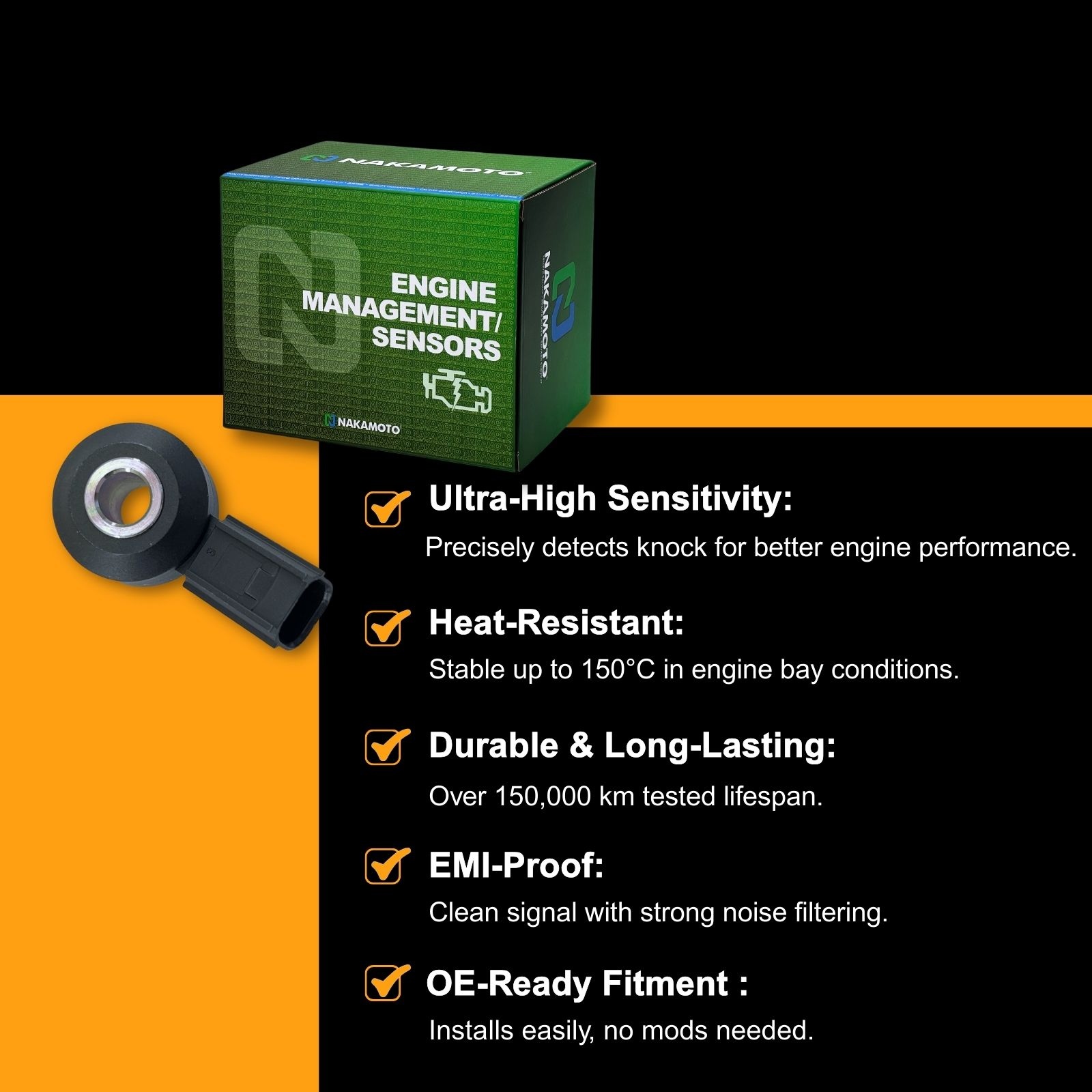 Nakamoto Knock Sensor 30530-R1A-A01 For Honda Accord Civic & Acura MDX